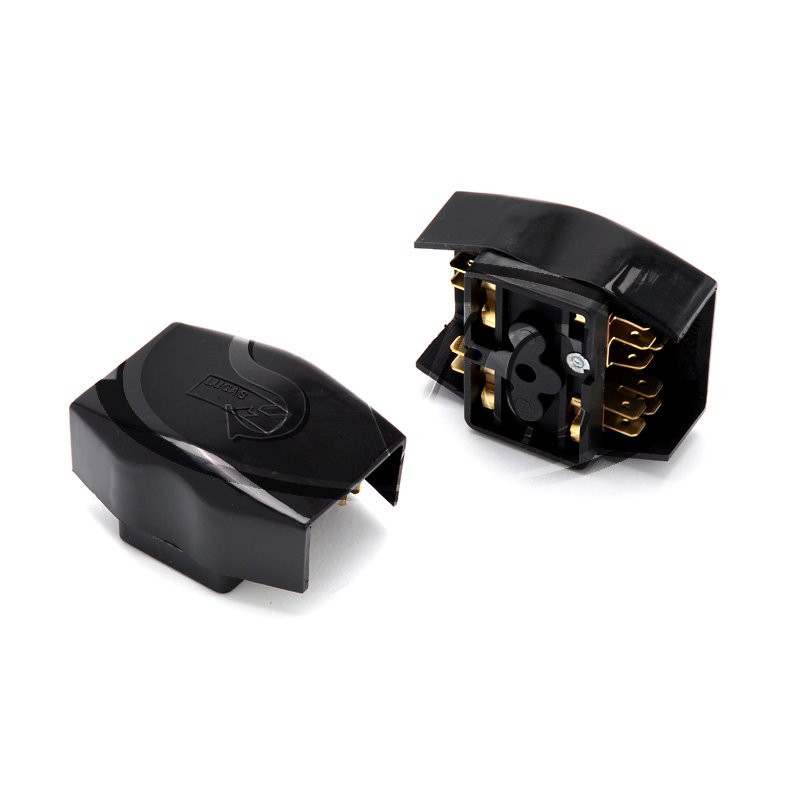 Lucas 4FJ fuse box for two glass type fuses. Complete with cover and multiple 6.3 mm spade/Lucar connectors. Fitted to the MGB, Midget and Austin Healey Sprite from 1962 to 1970 and to the Mini & Triumph TR3a to TR4a.