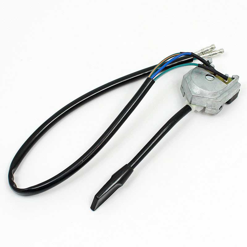 Pride column self cancelling indicator switch for either left or right side of the steering column. Includes wiring harness and bullet terminals. Suitable for classic Triumph and Lotus vehicles.