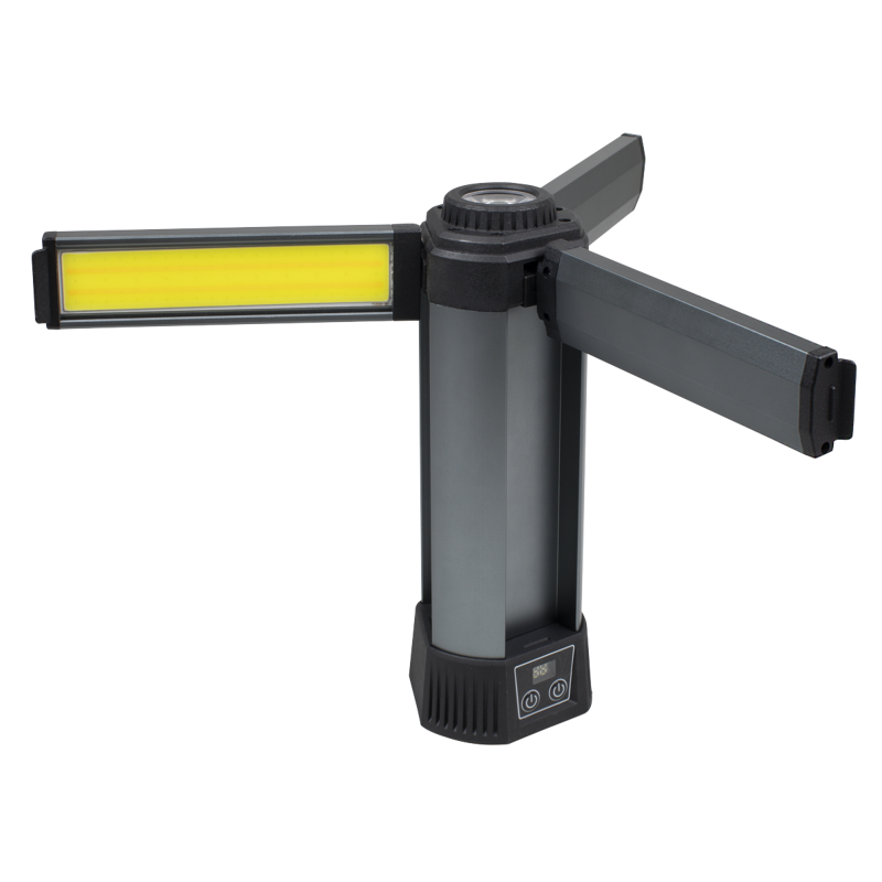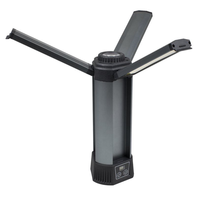 This flexible floodlight with tripod comes with three super bright 8W COB LED panels that produce up to 2000 lumens and a smaller 5W SMD LED spotlight that produces 400 lumens. LED Panels create a 360° spread of light or rotate and tilt to create a focused beam of light.