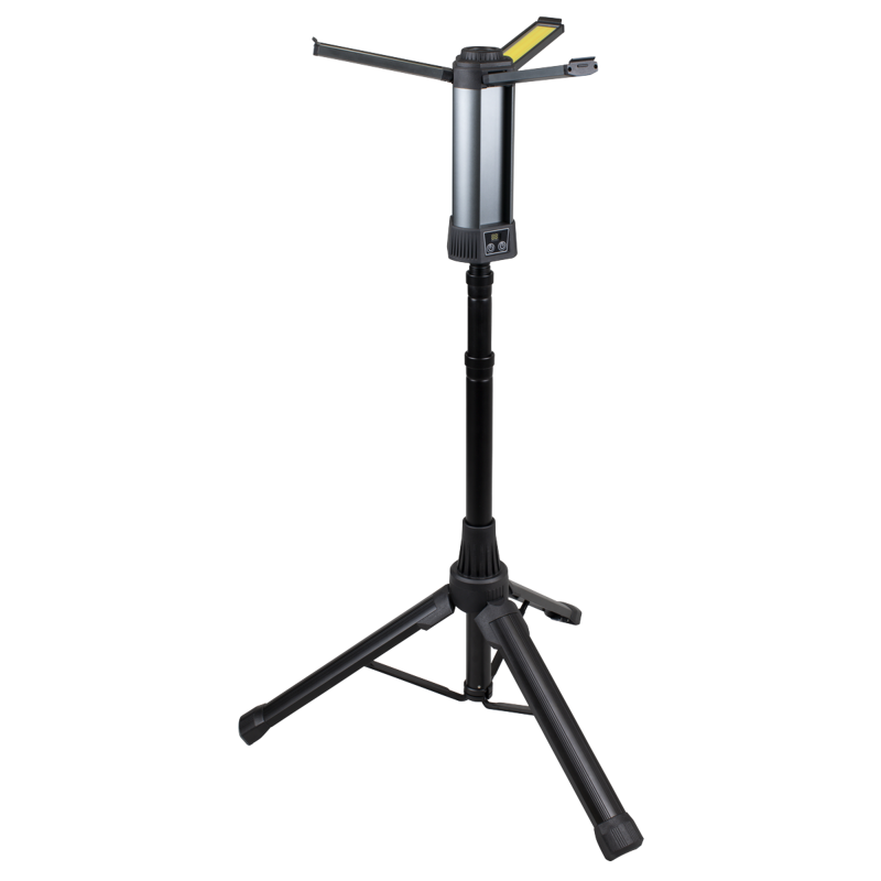 Mounted on a 1.1m tripod for simple positioning of light and hands-free operation. Built-in power bank with 5V⎓1A USB output for providing power on the go. Also features a magnet and hook which provide more mounting options. 3.7V 4Ah lithium-ion battery for extended battery life with a long run time of 4 hours. Easy to read charge indicator displays the current battery level during use and while charging. Charges via USB Type-C cable (comes included).